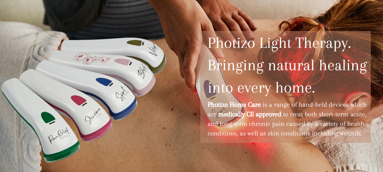 Photizo is a range of simple-to-use, hand-held devices which deliver this red and near infrared light safely by LED. Highly recommended by human and animal health professionals around the world, Photizo red light therapy also brings an amazing, powerful and extremely safe therapy into your home.