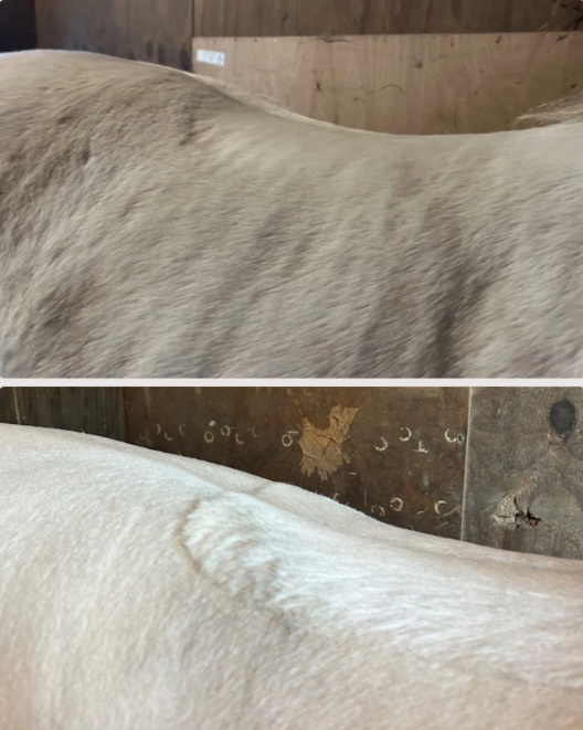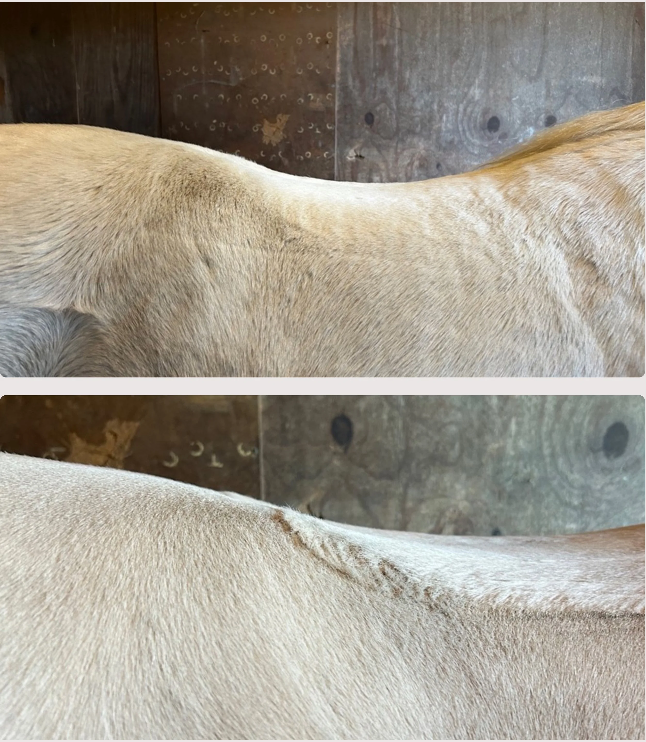 Further assessment revealed pain on palpation along the thoracic vertebrae, with Tink displaying a dipping response to applied pressure. Additionally, his performance under saddle had declined, with signs of discomfort such as head tossing and bucking during transitions.